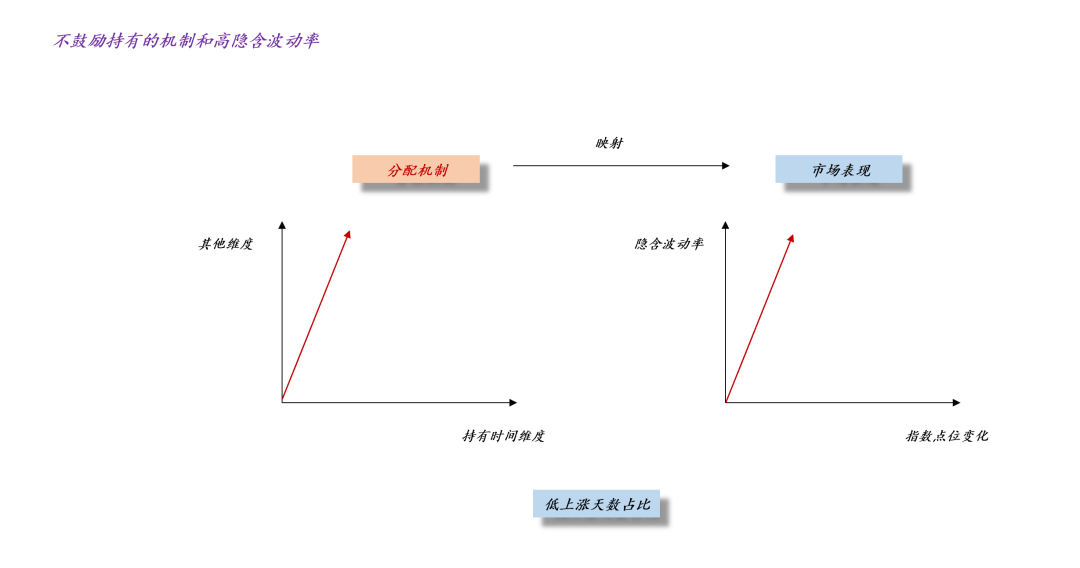 对称的,低上涨天数占比,意味着市场在鼓励投机,抑制长期持有,因此,市场的隐含波动率会很高。