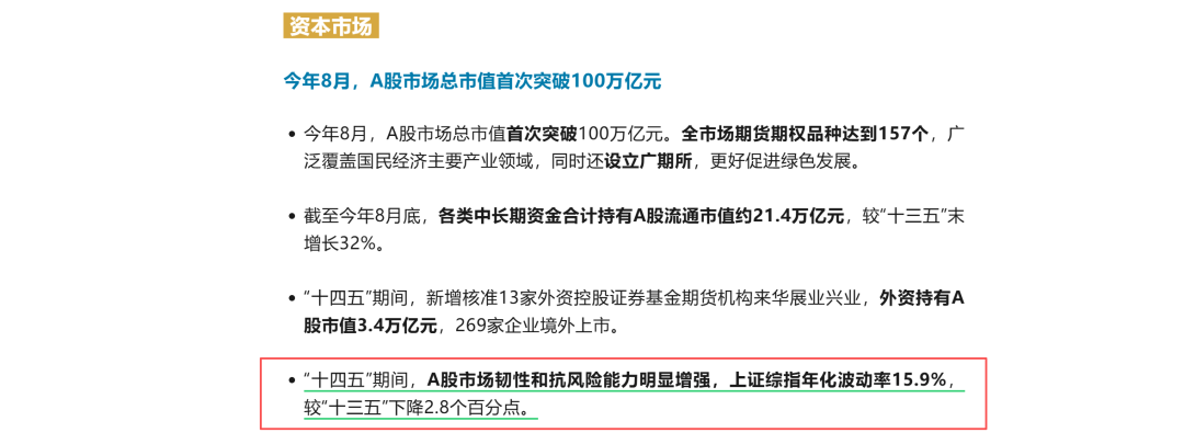 之所以“十四五”期间上证综指年化波动率能较“十三五”下降2.8个百分点到15.9%,最重要的原因在于量化资金的壮大。之前A股十分缺乏做空波动率的资金,投资者们言必称“成长”、“弹性”,最近几年,这种情况有所改观,长期投资、价值投资高股息标的也成为一个主要方向(ps:当然,保险公司的会计制度改革也贡献了不小的力量)。