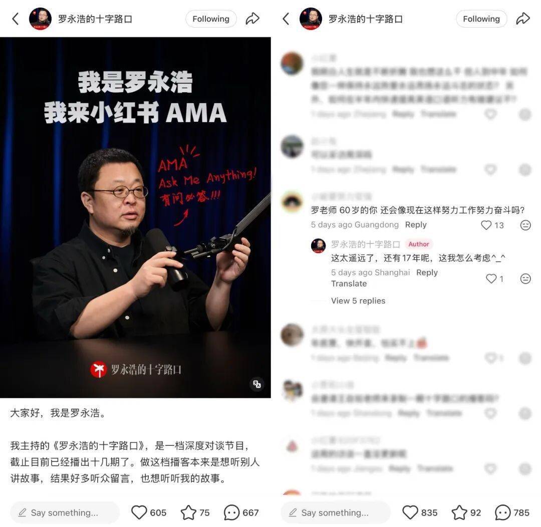 他觉得这种形式味儿挺对,就这样,成了小红书上第一个搞 AMA 的 AI 圈内人士。
