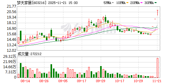 梦天家居(603216)今日涨停,全天换手率12.22%,成交额5.64亿元,振幅5.98%。龙虎榜数据显示,机构净卖出1952.90万元,营业部席位合计净买入1013.75万元。